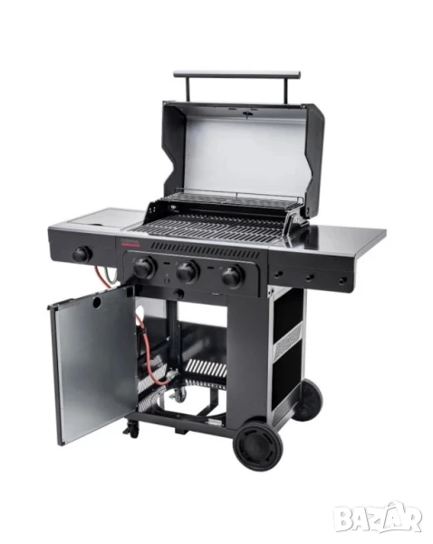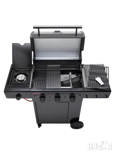 Газово барбекю Char Broil Essential 3 G е модел от 2025г. и е професионално барбекю с 3 горелки в основния грил с TRU-Infrared™ technology за сочна и здравословна храна и страничен газов котлон. Технологията изолира максимално огъня от продуктите за печене, което запазва храната здравословна и до 50% по-сочна. Запалването на мазнината по горелките също се свежда до минимум. Моделът Essential 3 G е модерно многофункционално устройство, оборудвано с две странични отделения за съхранение, шкаф и страничен рафт, осигуряващи достатъчно място за всичко необходимо.