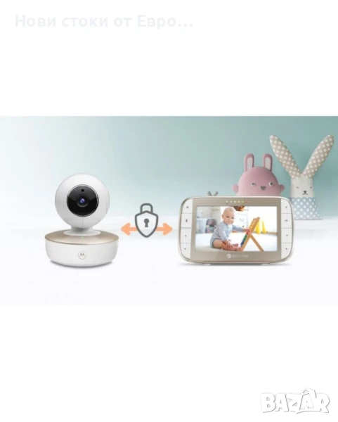 Видео бебефон Motorola - VM50G Видео бебефонът Motorola VM50G предлага пълен контрол и спокойствие за родителите. Без необходимост от Wi-Fi или приложение, устройството осигурява директна защитена връзка между камерата и родителския монитор, използвайки усъвършенстваната 2,4 GHz FHSS технология, която гарантира, че само Вие ще можете да виждате и чувате Вашето бебе. Поверителността е напълно осигурена. Мониторът предлага пълно покритие на помещението с възможност за регулиране на ъгъла на изгледа (панорама, наклон или мащабиране) дистанционно, което Ви позволява да наблюдавате различни части на стаята. Камерата е снабдена с височувствителен микрофон, който може да улови дори най-малките звуци, като Ви предупреждава, когато бебето започне да плаче. Родителското устройство е с 5" LCD цветен дисплей и осигурява лесно наблюдение с висока разделителна способност от 480 x 272 пиксела. Със своята акумулаторна батерия от 2000 mAh, устройството предлага до 5 часа възпроизвеждане и сигнализира при ниска батерия или извън обхват. Бебешкият модул (камера) има моторизирано панорамиране, накланяне и 2x цифрово увеличение за още по-ясно наблюдение. Инфрачервеното нощно виждане позволява да наблюдавате бебето дори в тъмнина, а успокояващите приспивни песни ще помогнат за създаването на уютна атмосфера. Двупосочният разговор с високочувствителния микрофон позволява лесна комуникация с Вашето дете. Камерата осигурява стабилна и защитена връзка с обхват до 300 метра, а възможността за свързване на до 4 камери Ви позволява да разширите системата според нуждите си. ХАРАКТЕРИСТИКИ: Родителско устройство (приемник): 5" LCD цветен дисплей (480 x 272 px); 2,4 GHz FHSS безжична технология с обхват до 300 м; 2000 mAh акумулаторна батерия с 5 часа възпроизвеждане; Индикатор за нивото на звука; Мониторинг на стайна температура;Възможност за свързване на до 4 камери; Сигнали за ниска батерия; Сигнали за извън обхват; Подвижна стойка за родителско устройство; Бебешки модул (камера): Моторизирано панорамиране, накланяне и 2x цифрово увеличение; Инфрачервено нощно виждане; Успокояващи приспивни песни; Двупосочен разговор с високочувствителен микрофон; Защитена връзка; Въртяща се камера; Обхват до 300 м;