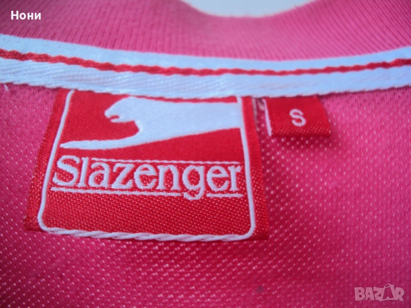 Slazenger Мъжка тениска в розово. Ръст С. С нормални следи от употреба. Размери: Дължина 70 см. От рамо до рамо 48. От подмишница до подмишница 53.