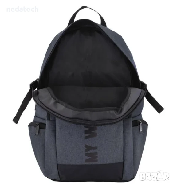Спортна раница в сив цвят, с черен принт "My way outdoor". Изработена от лека и мека материя. Има голям капацитет за вашите ежедневни вещи. Разполага с множество отделения, външни джобове с цип, странични джобове, регулируеми презрамки и дръжка. Идеална за вашите спортни дейности.