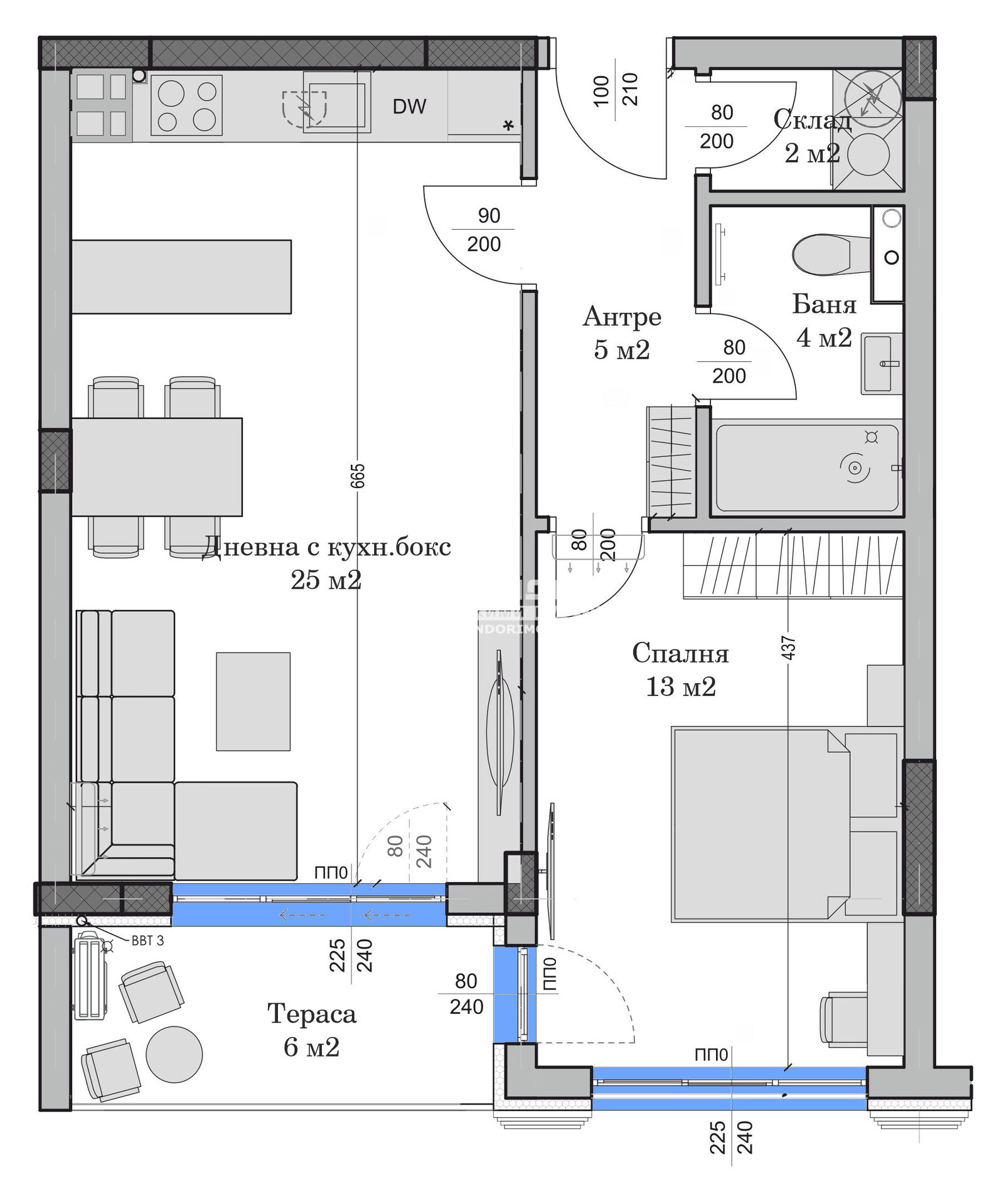 Оферта 67464: Предлагаме на вашето внимание двустаен апартамент в новоизградена, иновативна и модерна сграда със собствен стил с изчистена визия, проектирана така, че да създаде максимален комфорт и уют за живеене. Жилището се състои от дневна 25кв.м. с трапезария и кухненски бокс, една самостоятелна спалня 13кв.м., баня с тоалетна, перално, антре и една обща тераса. Проектът предвижда застрояване, просторни и панорамни жилища, вътрешен двор с оформени зелени зони за релакс и почивка. Сградата привлича вниманието със своята локация, разположена в близост до Гребна база и парк Отдих и култура, обособили се като едни от най-развиващите се и предпочитани райони за живеене в града, както и до няколко от най-добрите болници, а именно ( Пълмед, Селена, Хирургиите ). В близост до сградата има големи хранителни магазини, детска градина, училище, автобусни спирки и всичко необходимо за едно нормално ежедневие. Инвеститора осъществява сгради, които задават нов стандарт в жилищното строителство. Комбинирайки модерни технологии, безкомпромисно качество и прецизен дизайн, за да осигурим среда, която предлага комфорт, естетика и функционалност. Сградата ще бъде с ИЗЦЯЛО окачена, ВЕНТЛИРУЕМА ФАСАДА с енергийна ефективност от висок клас, система УМЕН ДОМ, високоскоростни асансьори, както и към всяко паркомясто ще има прекаран трифазен ток за поставяне на ЗАРЯДНА СТАНЦИЯ за електроавтомобили, Видеонаблюдение, най-висок клас блиндирани врати за висока степен на сигурност, master key система за още по-сигурен контрол на достъп, автоматизирани системи против пожари , които осигуряват бърза реакция в случай на необходимост. Паркирането е решено с голям подземен както и надземен паркинг като има голям избор на паркоместа и гаражи. Гъвкави схеми на разсрочено плащане в рамките на строителството, както и съдействие за банково кредитиране с изключително изгодни условия за клиенти на агенция !!!ВИЖТЕ ОЩЕ ИЗГОДНИ ОФЕРТИ НА https://www.kondorimoti.com/ С ЕЖЕДНЕВНА АКТУАЛИЗАЦИЯ!