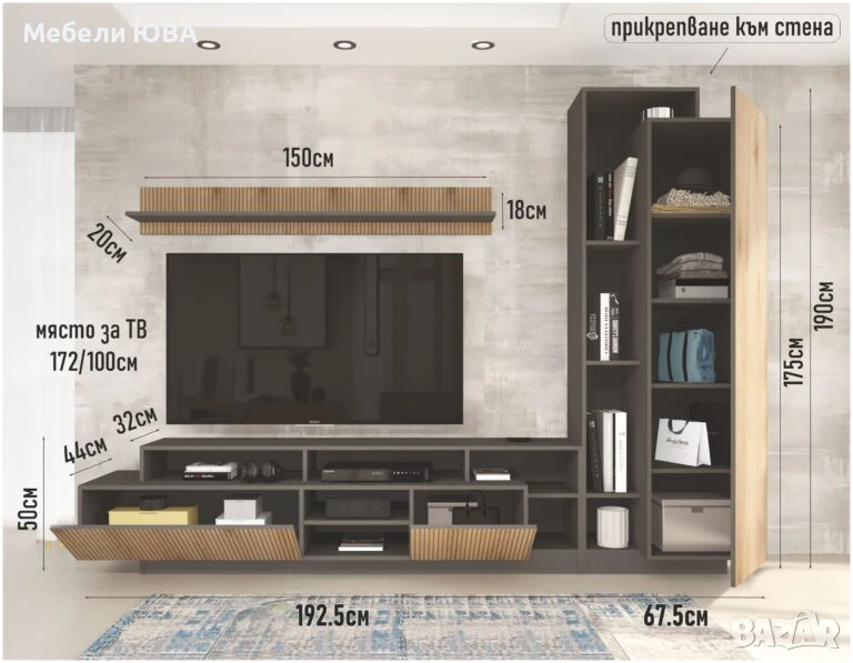 Място за ТВ: 172/100 см