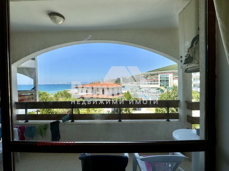 Домм Имоти Ви Предлага за продажба просторен двустаен апартамент, разположен на трети етаж в престижен затворен комплекс на първа линия море в курортен комплекс Робинзон Бийч Елените, в близост до Свети Влас. Имотът се отличава с директна панорамна гледка към морето и западно изложение, което гарантира светлина и топлина през целия ден.