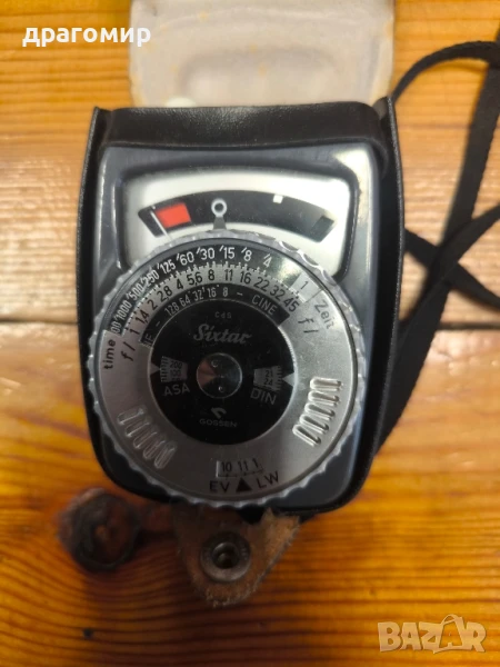 продавам светломер, неразличим от нов,с оригинален кожен калъф, работи с една батерия V625U 1,5 v, GOSSEN Sixtar, имам още много други фотоапарати, камери, обективи, чанти, светкавици, батерии, зарядни устройства, касети, филтри, ремъци, ленти, при закупуване на повече неща отстъпка