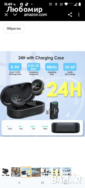 【Дълго време на работа -- Type-C порт】Един безжичен микрофон за iPhone може да работи 8-9 часа с пълно зареждане, общо 18 часа за 2 бр. lavalier микрофона с USB-C. Снабден с калъф за зареждане, може да се използва до 24 часа, така че никога повече няма да се притеснявате, че ще ви свърши зарядът. Те са чудесен вариант за подкасти в движение или за създаване на YouTube видеоклипове. Идеални за употреба на открито и за дълготрайни стрийминг на живо. Type-C портът е съвместим както с iPhone серия 15, така и с iOS и Android смартфони, таблети, Windows или Mac компютри.