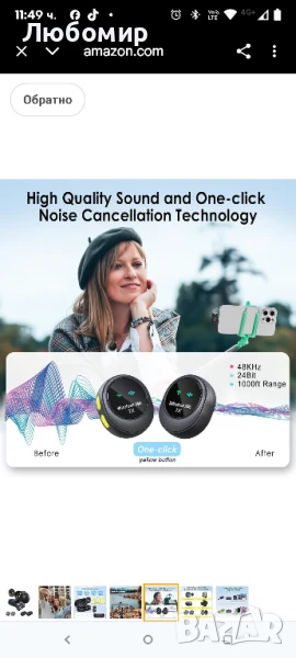 Безжичен микрофон Lavalier за iPhone/Android с шумопотискане, мини микрофон с USB-C жак,