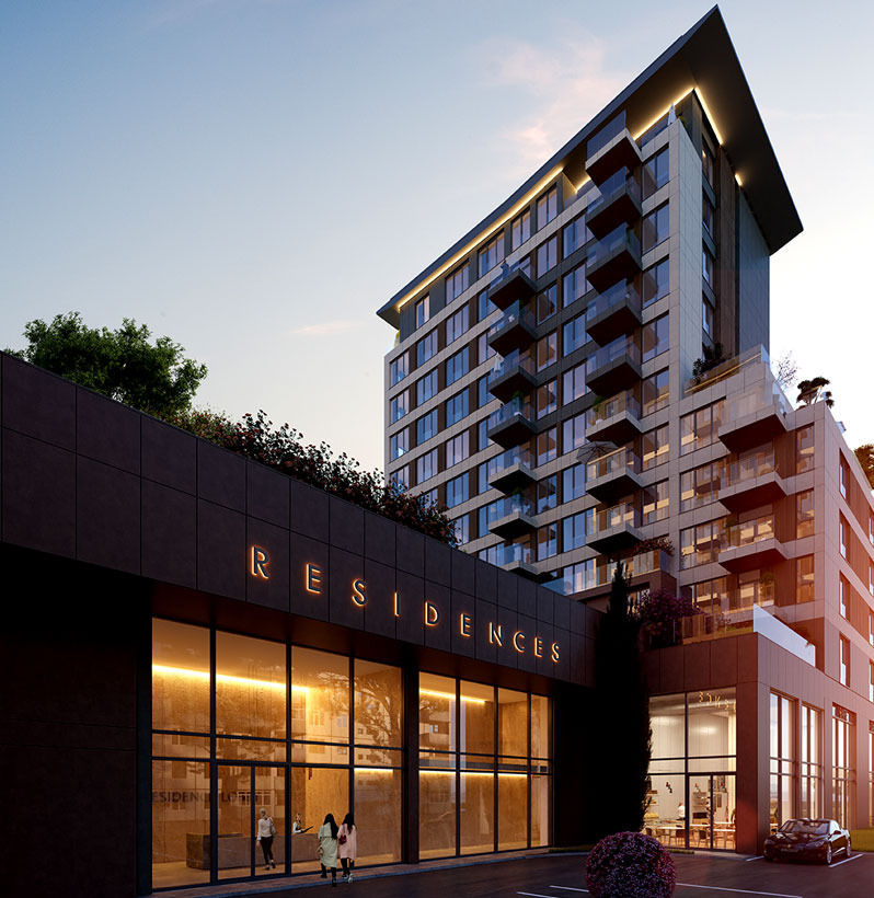 * 2 жилищни кули (западна - 11 етажа и източна - 13 етажа), апартаменти с 1, 2 и 3 спални, апартаменти на две нива с прилежащ двор;