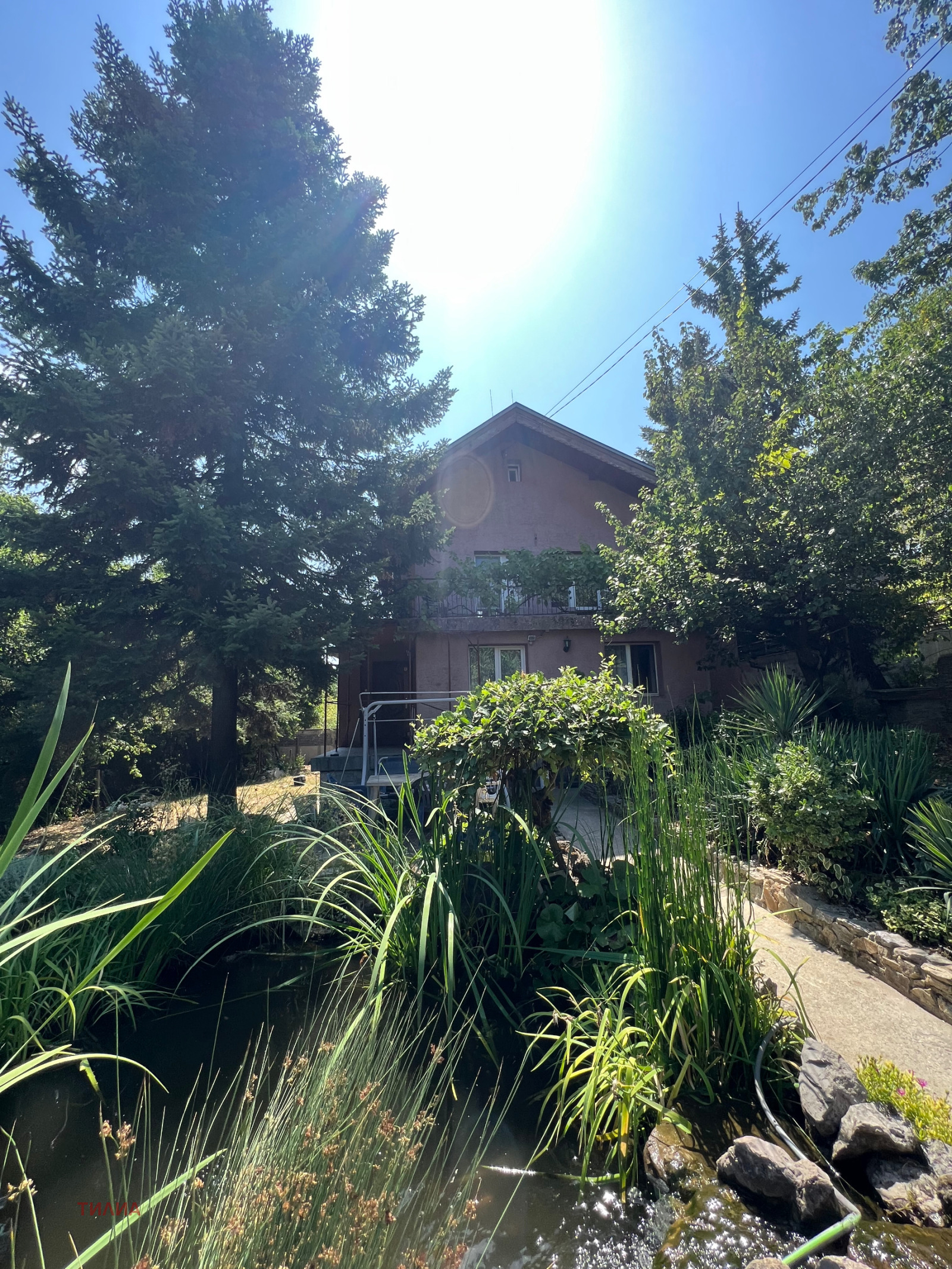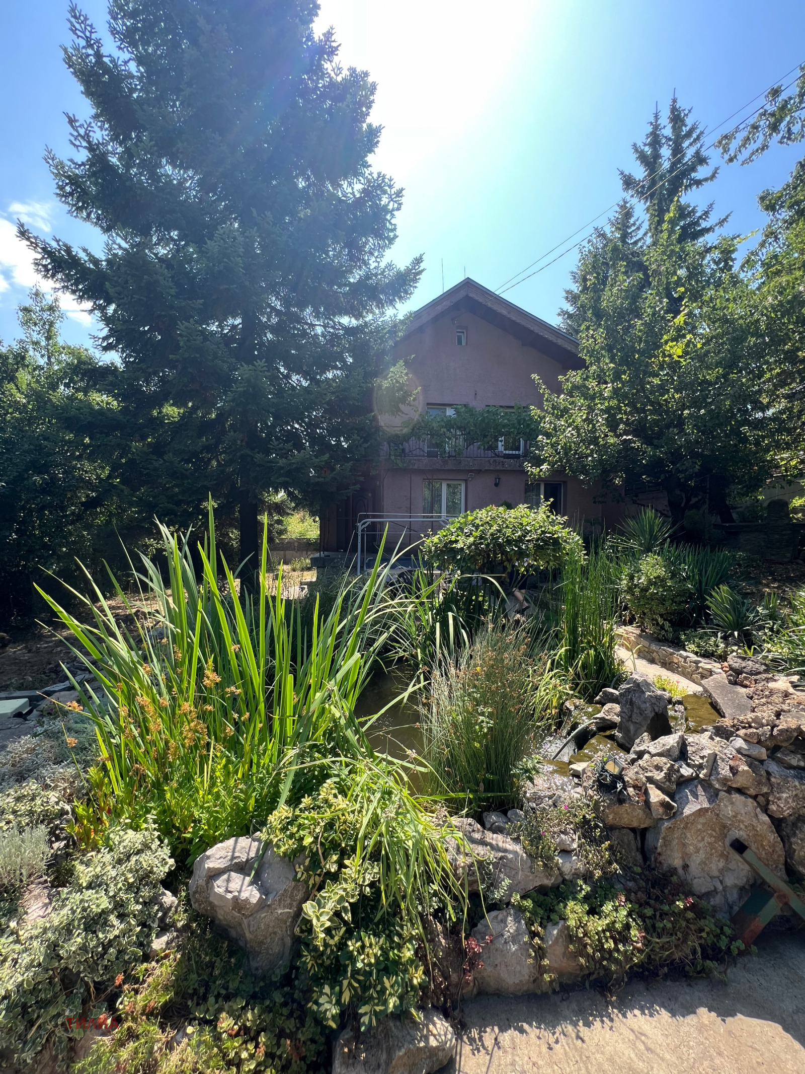 * Озеленен и добре поддържан двор с декоративно езерце