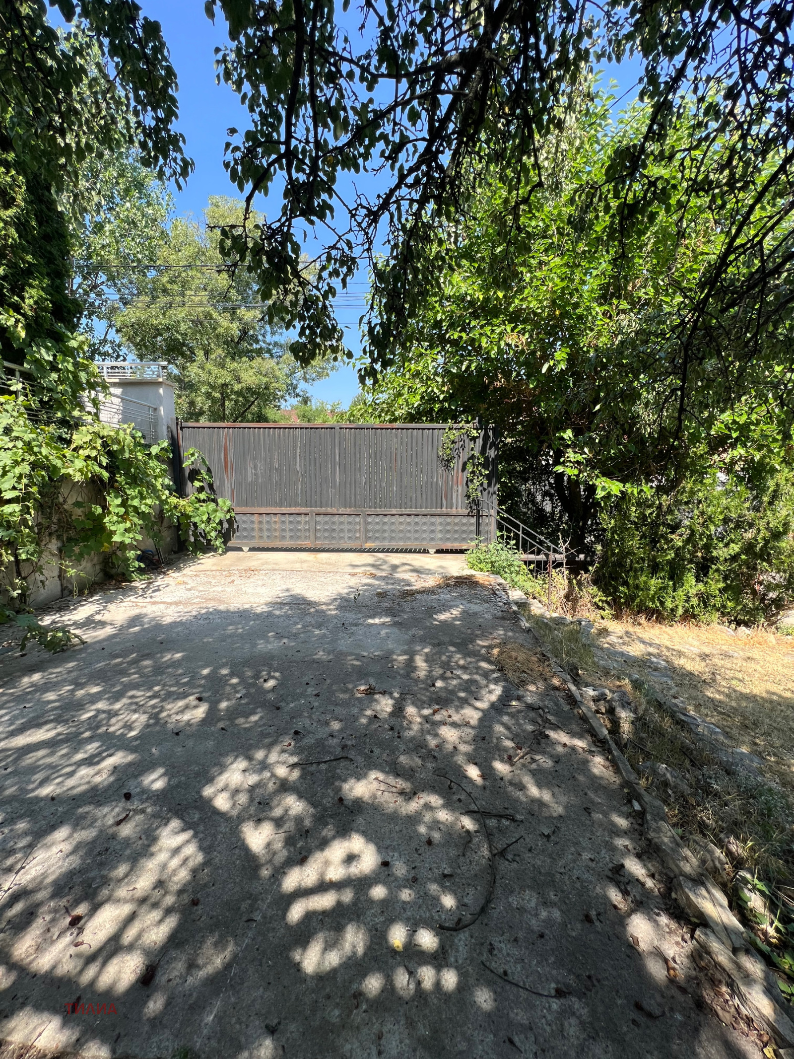 Дворът е равен, слънчев, поддържан, озеленен, с красиво езерце с разнообразие от красиви рибки.