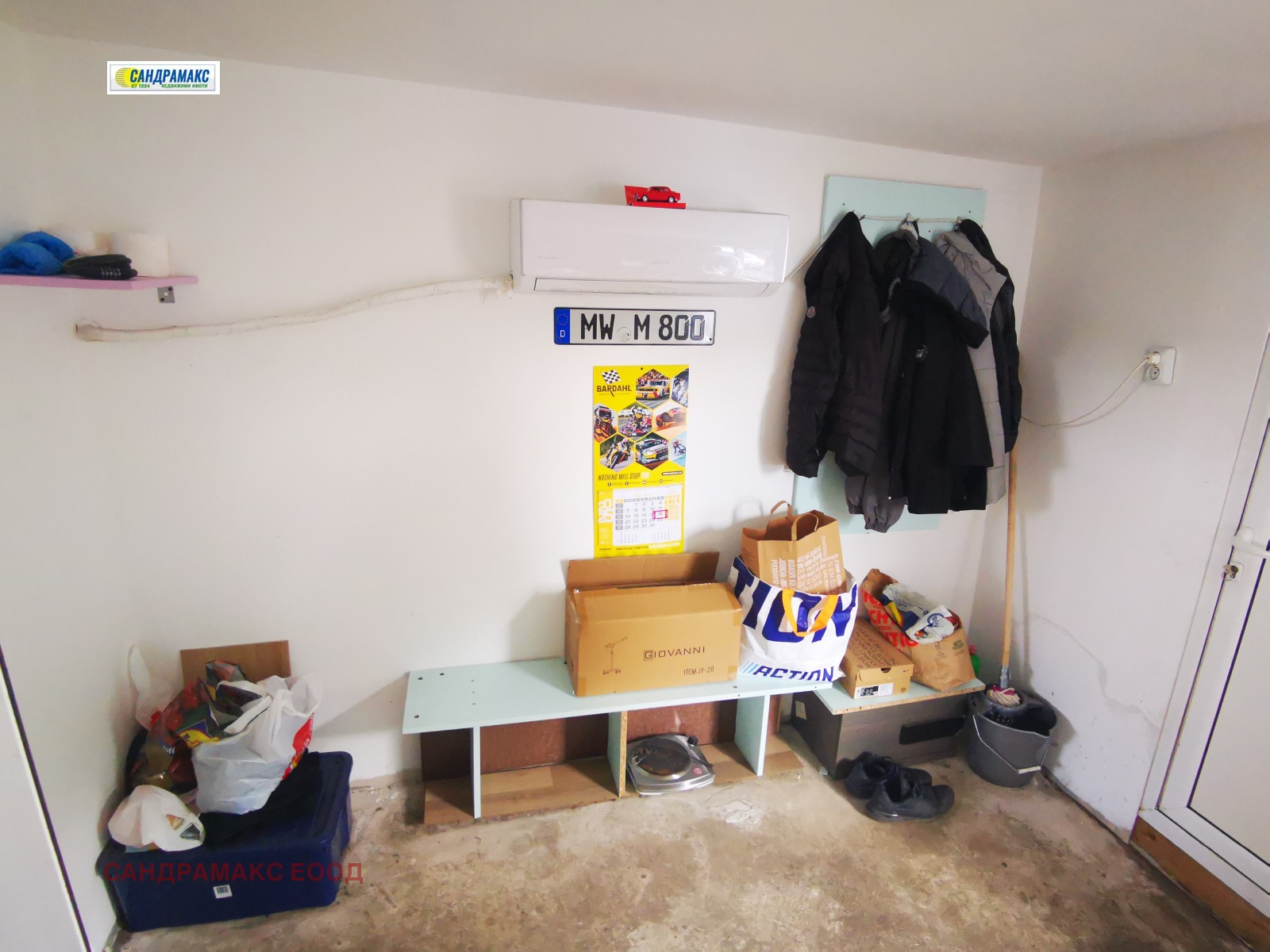 РАЗПРЕДЕЛЕНИЕ: Налични са ЧЕТИРИ халета, разпределени едно до друго. Всяко хале поотделно е с портални врати. В задната част е изградено помещение за офис с навес. В офиса е монтиран климатик. В едно от халетата е изградена шкаф - мивка.