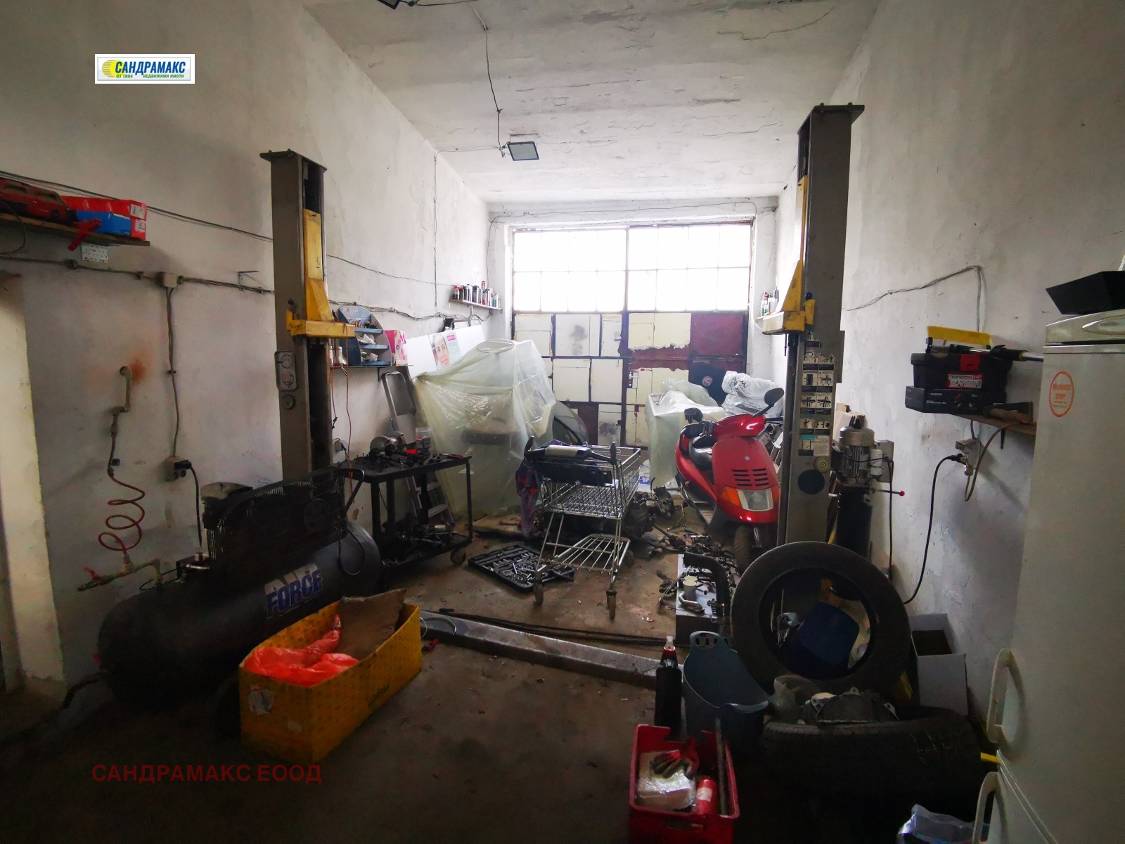 САНДРАМАКС продава ексклузивно ОБОРУДВАН И ДЕЙСТВАЩ автосервиз. Двор 500 кв.м., Застроена площ 140 кв.м., разпределена в четири халета.