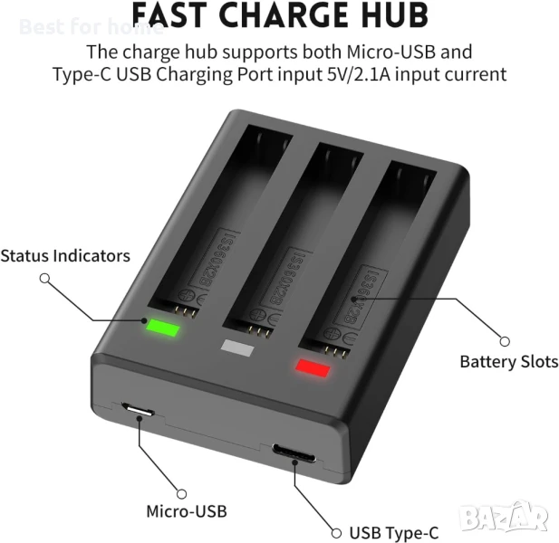 Insta 360 ONE X2 с хъб за бързо зареждане, 3-канален CINOSBT/B 1800mAh, аксесоари за Insta 360 x2 (2*батерии+хъб за зареждане).