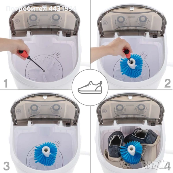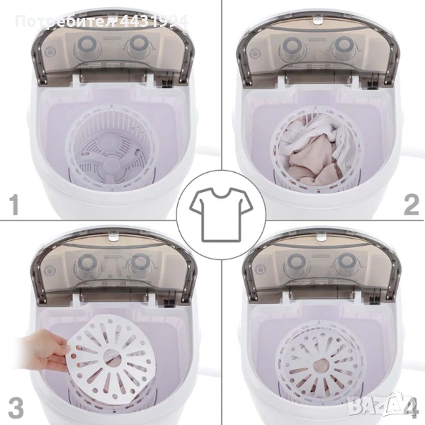 Капацитет на зареждане: 3kg; Скорост на завъртане: 375 об./мин Цвят: Бял/Черен; Приставка за пране на обувки; Бруто тегло: 5.5kg; Нето тегло: 4.5kg; Размери на продукта: (ШхВхД) 345x510x345mm; Размери на опаковката: (ШхВхД) 365x570x375mm; Гаранция за физически лица: 2 години;