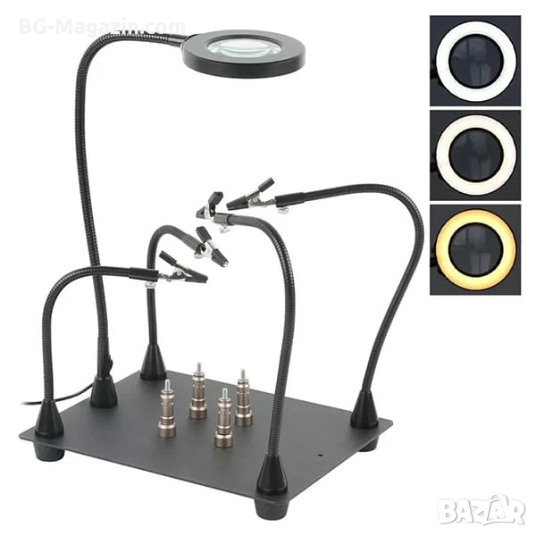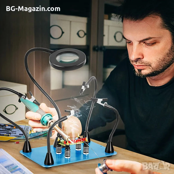 Позволете ни да преобразим начина, по който работите с дребни детайли, чрез увеличителна настолна лупа със станция за запояване с „Помагащи Ръце“ и 3X LED Увеличителна Лампа! Това не е просто инструмент, а ваш верен помощник, създаден да улесни всеки проект, изискващ прецизност и стабилност.