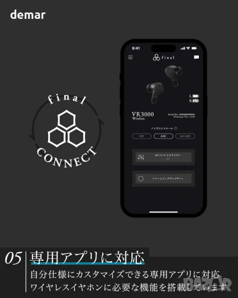 VR3000 Wireless предлагат ултраниска латентност под 20ms чрез USB трансивър за плавна игра без забавяне, с Bluetooth 5.2 като резервно копие за стабилна свързаност. Хибридното активно шумопотискане блокира разсейващи фактори като вентилатори и климатици, без да е необходима висока сила на звука, докато двойните MEMS микрофони осигуряват ясен гласов чат без смущения. Включват пет размера удобни слушалки TYPE E за сигурно и ергономично прилягане. Животът на батерията е до 8 часа с едно зареждане (38 с калъф, изключено ANC), а функции като аудио миксиране, сензорен контрол на усилването и настройка на еквалайзера чрез приложението FINAL CONNECT подобряват игровото изживяване. Съвместимостта с Xbox не се поддържа.
