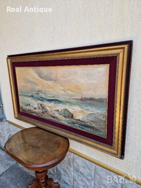 Продавам огромна уникална антикварна авторска майсторска картина масло върху платно в много добро състояние без забележки с чудеснарамка