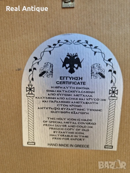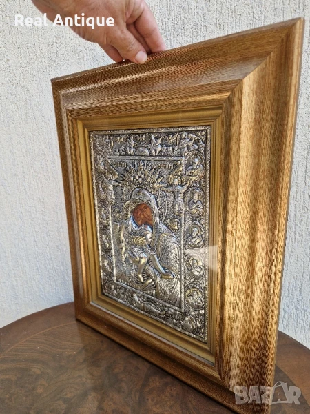 Голяма антикварна сребърна икона със сертификат и маркировка → Обява 51179601