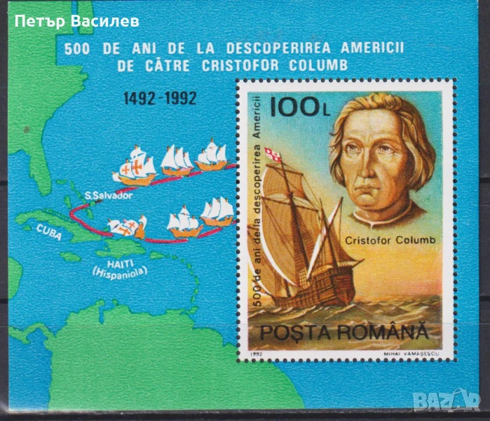 Чист блок Америка Колумб Кораби 1992 от Румъния.