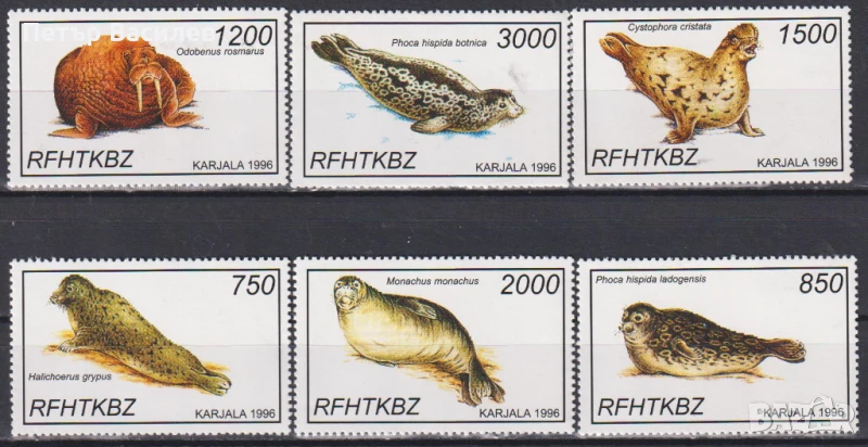 Чисти марки (6) Фауна Морски бозайници 1996 от Карелия Русия.