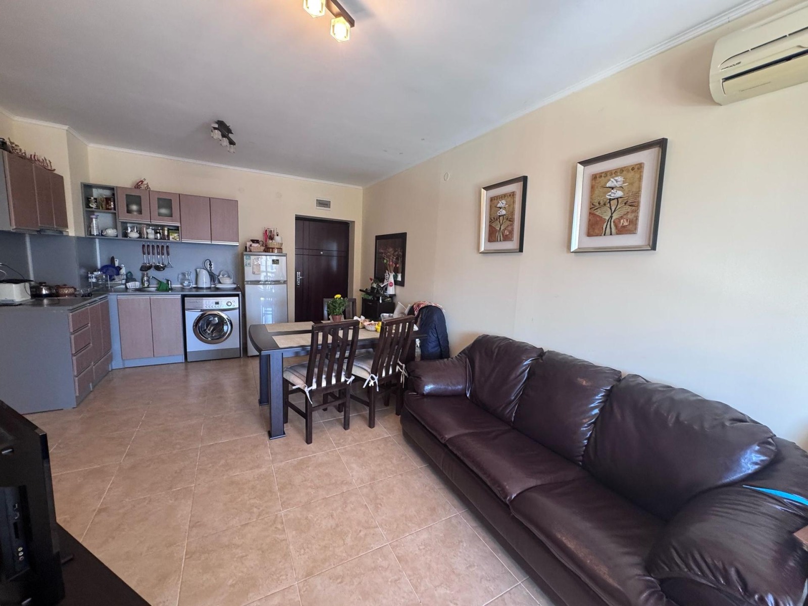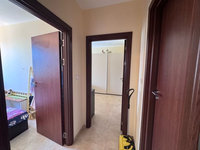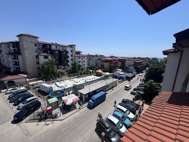 Прекрасен ваканционен имот за постоянно обитаване или отдаване под наем. Дневна с кухненска част. Две спални. Два Санитарни възела. Антре. Просторна тераса с изглед към озеленено пространство и море. Обзаведен. Климатици. Кухненско оборудване и обзавеждане. Пети етаж. На 200 метра от плажната ивица и 300 метра от Аквапарк Парадайз. Комплексът, в който се намира апартамента разполага със 7 басеина, два ресторанта, тенис комплекс, 3 детски площадки, кафе, минимаркет, спа център. Целогодишна поддръжка и охрана с видеонаблюдение. Годишна такса за поддръжка и охрана. Възможност за закупуване на гараж/подземно паркомясто/.