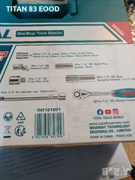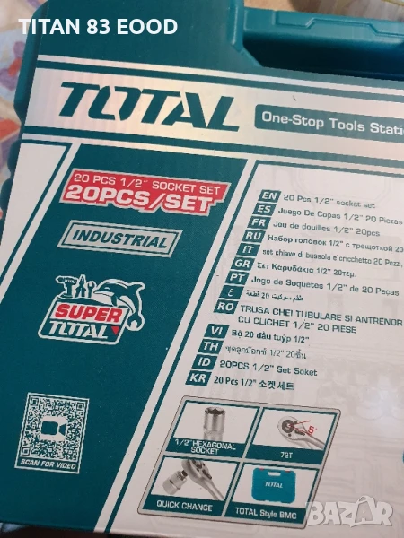 Комплект тресчотка и вложки TOTAL INDUSTRIAL, 1/2", 20 части