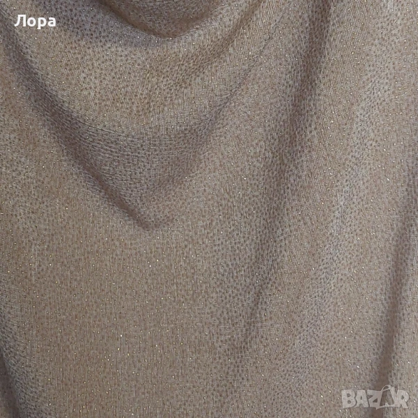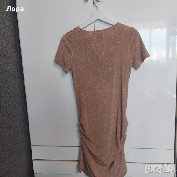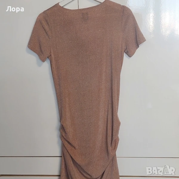 Лятна дамска еластична рокля. Подходяща както за ежедневието така и за специални поводи. Цвета е телесен със златиста нишка. Ширина от мишница до мишница 50 см талия 45 см ханш 50 см дължина на роклята 95 см. Без забележки неразличима от нова.