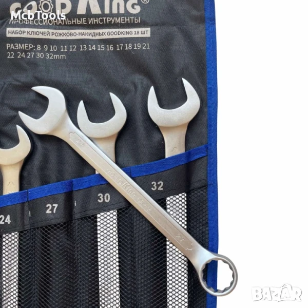 - Набор комбинирани ключове GOODKING KRN-10018 е незаменим комплект инструменти за Вашия автомобил. С този набор ще можете лесно да се справите с всяка задача, а комплектът е подходящ както за любители, така и за центрове за техническо обслужване на автомобили. Наборът комбинирани ключове от GOODKING се предлага с компактен калъф, като всеки ключ има собствено място и ще бъде здраво закрепен в калъфа.