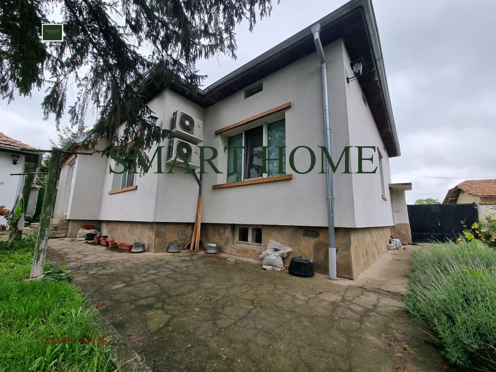 Агенция Смарт Хоум предлагат едноетажна тухлена къща за продажба находяща се в с. Поликраище. Селото е разположено на 14 км от гр. Велико Търново и на 7 км от гр. Горна Оряховица. Поликраище е едно от най-голямите села в област Велико Търново и разполага с множество удобства - училище, детска градина, магазини, автобусен транспорт. Къщата е ситуирана на асфалтов път и се състои от антре, всекидневна с кухненски тракт, три самостоятелни спални и две бани с тоалетна. Продава се във вида на снимките - обзаведена и оборудвана с висок клас ел. уреди. Има външна топлоизолация, PVC дограма, четири инверторни климатика, котел на твърдо гориво и соларни панели за ток и за топла вода. Всички подови настилки, мазилки, декорации и орнаменти са направени от естествени материали - дърво и камък. Къщата разполага с таван и избено помещение. Дворното място е с площ от 1300 кв.м., като в него са ситуирани лятна оборудвана кухня, навес с пещ, беседка, гараж и постройка използвана за склад. Реф. 259