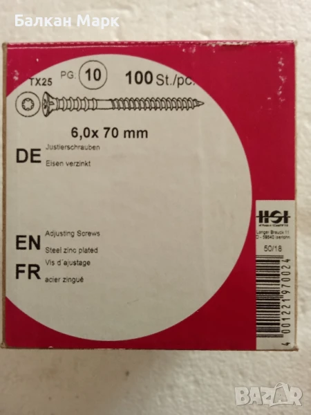 Регулиращи, регулируеми, дистанционни винтове за дърво 6x70 мм с връх тип 17,100бр.