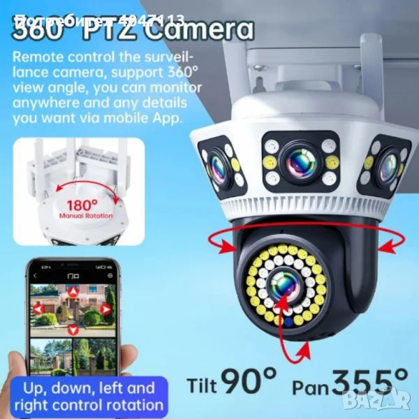 Пълноцветна панорамна 6K Wi-Fi камера за нощно виждане → Обява 51182791