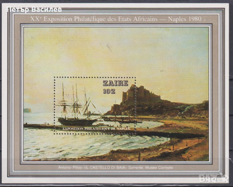 Чист блок Филателна изложба Живопис Кораб 1980 от Заир.