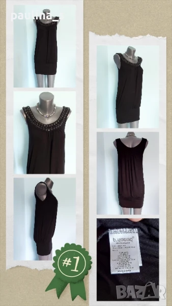 2️⃣. Колаж / L / 2XL - "b.young". Цената е крайна 19,99лв / 9,8 евро. Еластична брандова туника с камъни на бието. Има еластичност, от вискоза и ликра, покрива няколко размера, само една бройка е, без дефекти и етикет, като нова.
