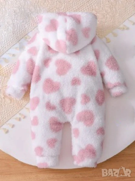 Зимно или есенно плюшено боди с качулка и дълъг ръкав