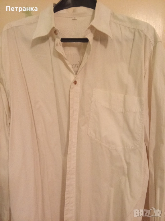 Снимки 1, 2 и 3 - НОВА официална бяла риза , с бродиран надпис на яката, размер L, цена 5,40 eur