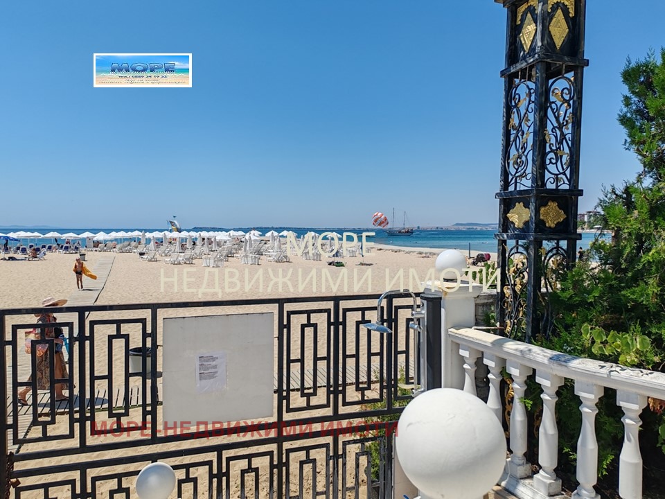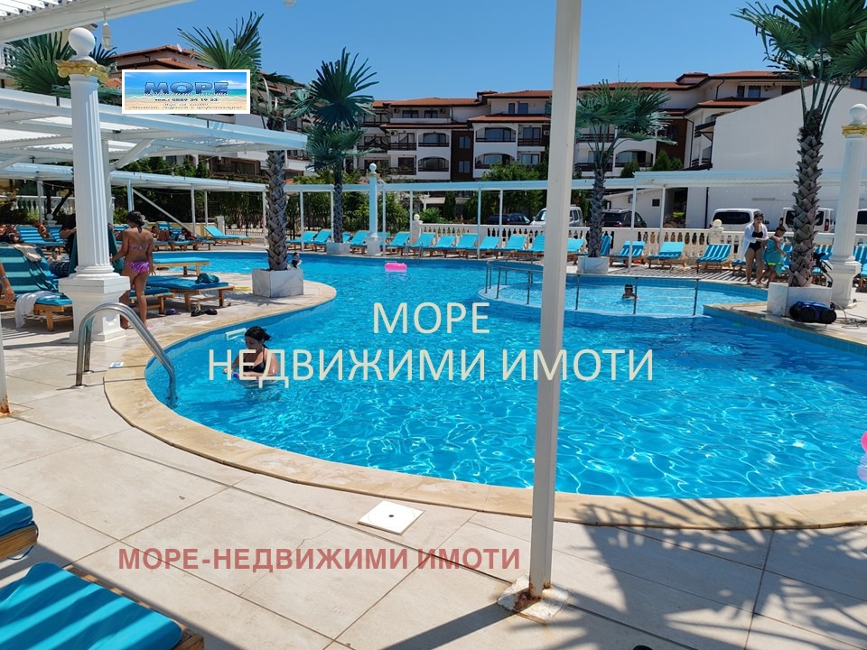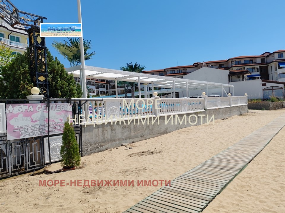 More-real estate sells an apartment on the 1st line of the sea in the resort Elenite. The apartment has a furnished living room with kitchen, dining table, sofa, bedroom with wardrobe, bathroom and terrace in front of both rooms. The complex is located in front of the sea, has benches, beautiful lawns, a restaurant, swimming pool and spa center. It has an area of 62.43 sq.m. and a maintenance fee. It is sold fully furnished.