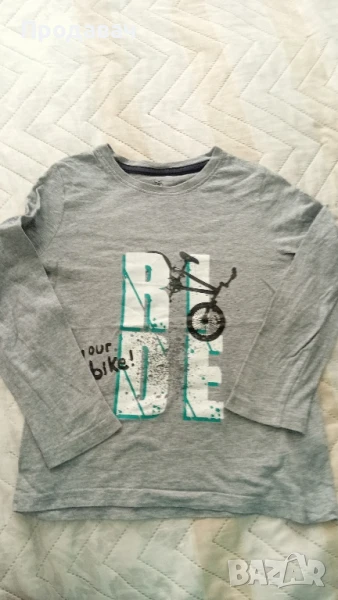 Лот плътен суичер и три блузки тънко трико, р-р 110-116 см., без забележки. 10 лв.