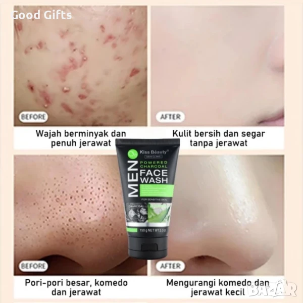 Премахни замърсяванията и мазния блясък с Kiss Beauty MEN Face Wash! Създаден специално за мъжка кожа, този почистващ гел с активен въглен и алое вера предлага дълбоко почистване без изсушаване. Подходящ за чувствителна кожа, той нежно отстранява черни точки, излишен себум и бактерии, оставяйки лицето освежено и чисто.
