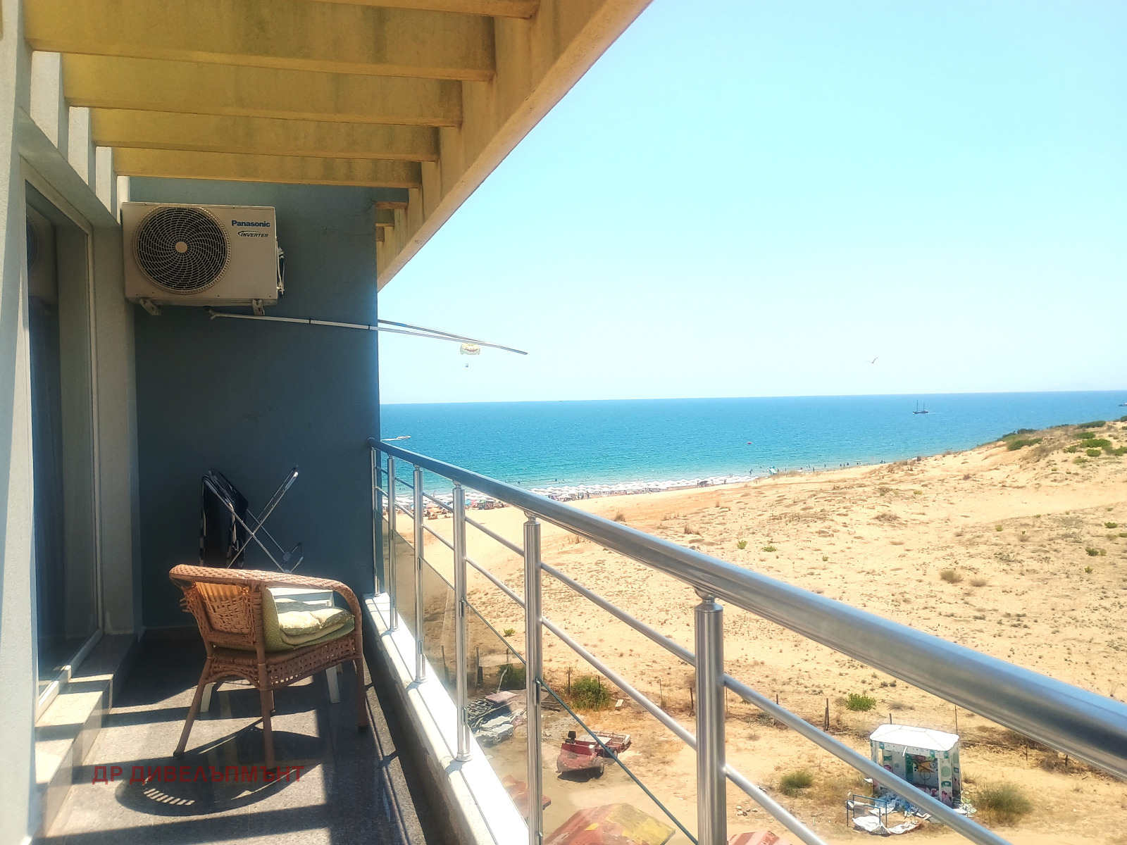 Сградата е емблематична за района и е на първа линия до плажа. Има контролиран достъп, отлично поддържана е, видеонаблюдение, басейн, детска площадка и озеленен двор. Има сформирана етажна собственост с много оптимална такса поддръжка, която не е на квадратен метър, а с Фонд ремонти и Фонд за оперативна работа. Мястото е близо до целогодишно работещи ресторанти, заведения, магазин Жанет, училището, съда, общината и всичко необходимо.