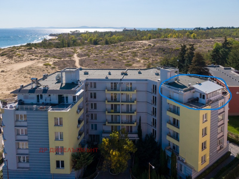 Сградата е емблематична за района и е на първа линия до плажа. Има контролиран достъп, отлично поддържана е, видеонаблюдение, басейн, детска площадка и озеленен двор. Има сформирана етажна собственост с много оптимална такса поддръжка, която не е на квадратен метър, а с Фонд ремонти и Фонд за оперативна работа. Мястото е близо до целогодишно работещи ресторанти, заведения, магазин Жанет, училището, съда, общината и всичко необходимо.