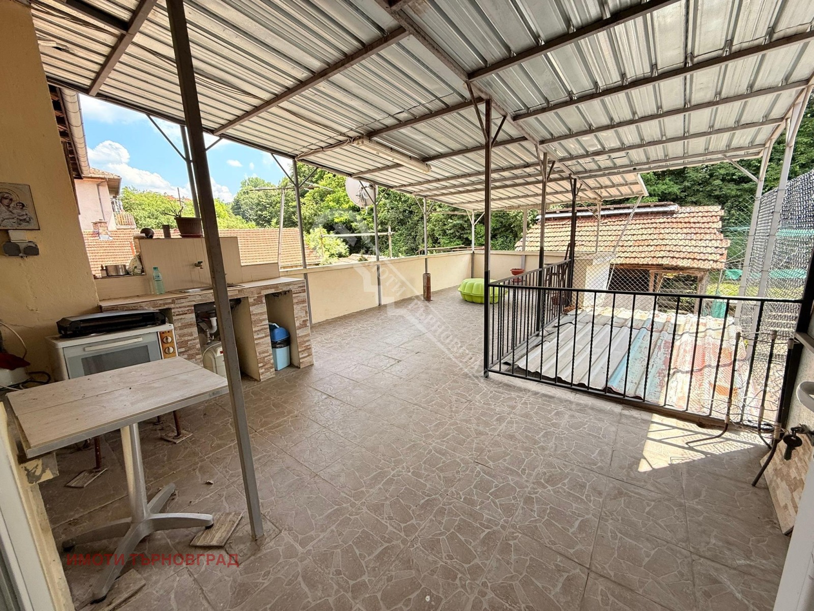 НАМАЛЕНА ЦЕНА! Имоти Търновград Ви предлага двуетажна къща с търговско помещение в гр. Трявна. Къщата е разположена на два етажа, като на първи етаж са разположени: коридор, кухненска част, една стая, баня с тоалетна, вход към дворното място, което разполага с стопанска постройка и търговско помещение с площ от 24 кв. м., което е със самостоятелен вход, склад 9кв. м. и санитарен възел. Втори етаж: коридор, спалня, две преходни стаи с тераса и просторна тераса с кухненска част. Оферта : 16718