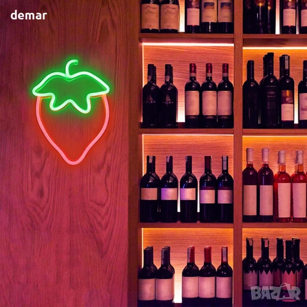 WIOSOUL LED Неонова табела с форма на ягода, 18,5x25 см, батерии или USB