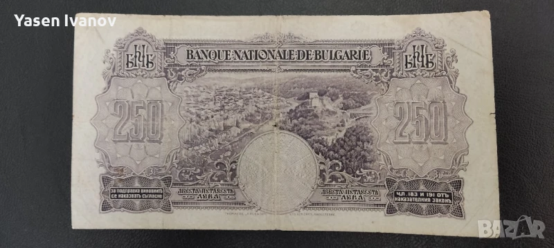 Банкнота 250 лева 1929 г. България → Обява 51189139