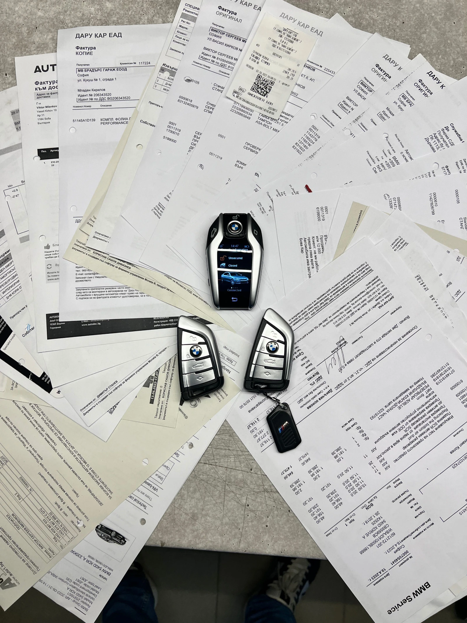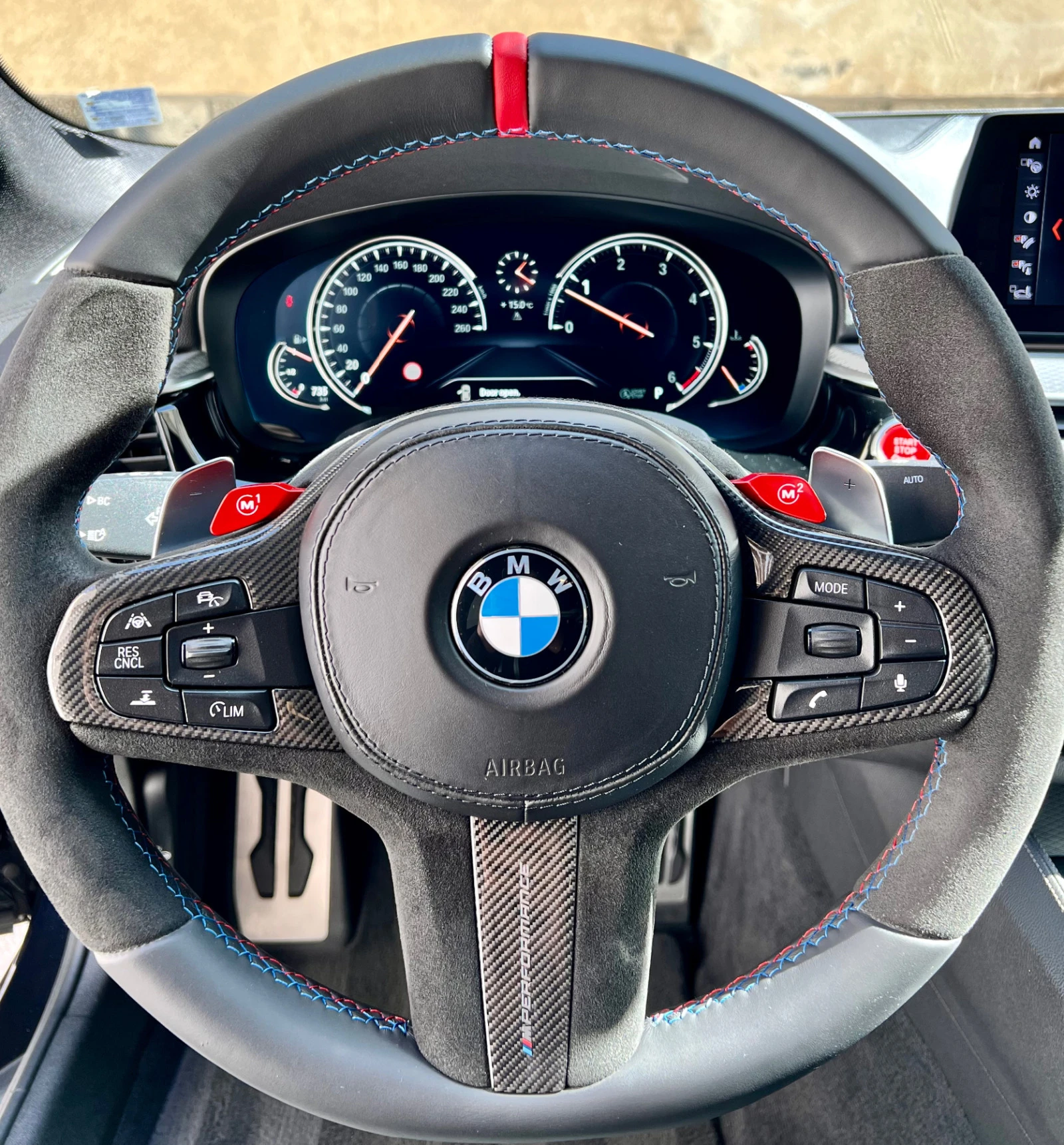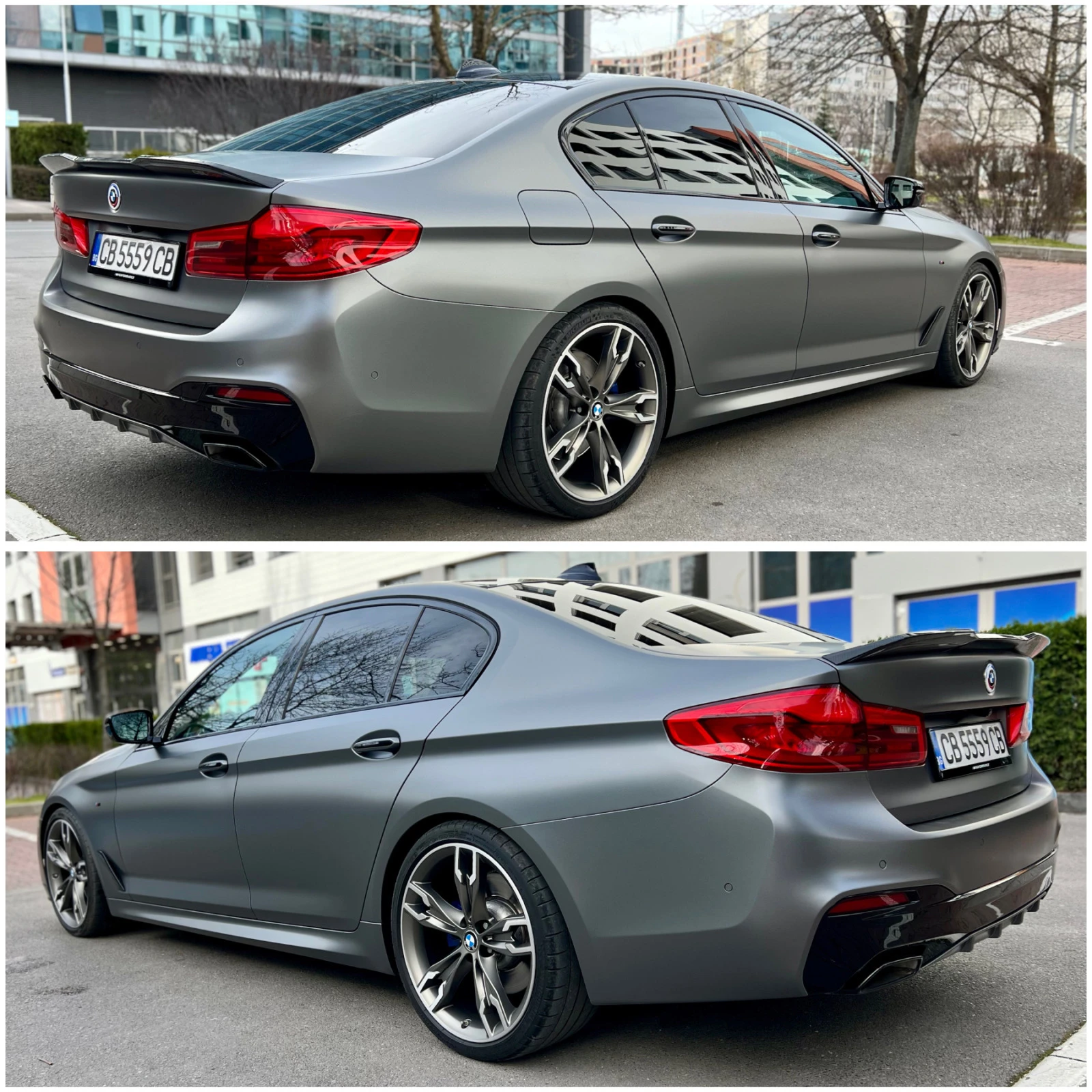 Selection of COP-relevant vehicles S1CBA CO2 equipment S2NHA M Sport brake S2PAA Locking wheel bolt S2TBA Sport automatic gearbox S2VBA Tyre pressure display S21PA BMW LA wheel M double spoke 664 5223A Adaptive suspension S230A Extra package, EU-specifc S258A Tyres with runflat properties S3DSA BMW display key S302A Alarm system S316A automatic trunk lid mechanism S322A Comfort access S323A Soft-Close-Automatic doors P337A M Sports package S4AWA Instrument panel Sensatec SAHAA Seat heating, front and rear S4K7A Interior trim alu. rhomb. w. accent strip SANBA Autom. climate control with 4-zone ctrl SANMA Ambient Air Paket S4T7A Massage function f. driver & fr. passenger S4T8A Outside mirror with auto dip SAURA Ambient interior light S420A Sun protection glazing S423A Floor mats velours S428A Warning triangle and first aid kit S441A Smoker package S453A Climate-controlled seats, front S456A Comfort seat with memory S465A Through-loading system SSACA High-beam assistant SSALA Active Protection SSATA Driving Assistant Plus SSDNA Parking assistance system Plus S502A Headlight cleaning system S552A Adaptive LED headlight S6ACA Intelligent emergency call SGAEA Teleservices SAKA Connected Drive Services S6NWA Telephony with wireless charging S6U8A BMW gesture control S6WBA Multifunctional instrument display S609A Navigation system Professional S610A Head-up display S650A CD drive S688A Harman/Kardon surround sound system S7CHA BMW Repair Inclusive S7NHA BMW Service Inclusive S710A M leather steering wheel S715A M Aerodynamics package S754A M Rear spoiler S760A High gloss shadow line S775A Headlining anthracite S8KAA Oil service interval 24 mths / 30, 000 km S8R9A Refrigerant R1234yf S8TFA Active pedestrian protection S853A Language version, English 5880A On-board literature, English S9AAA Outer skin protection Автомобилът е личен (не е служебен), безкомпромисно поддържан само в официален сервиз. Пълна сервизна история. Перфектно състояние до последния си километър. Сменен гаранционно двигател+EGR+маслени охладители и др в Дарукар преди 48000 км (Стойността на такъв ремонт в официален сервиз на BMW е близо 60000 лв). Маслото се сменя само на на интервал от 10000км. Прясно сменено масло на скоростна кутия + дифове + раздатка. Оригинален М Performance пакет (карбонов преден лип, карбонови сплитери, карбонов заден спойлер, дифузьор и волан). Цялостно е облепена с премиум фолио в цвят Matt Charcoal на PWF, оригиналния цвят на колата е черен - Diamond Schwarz Metallic. Колата няма променен софтуеър нито на двигателя, нито на кутията. Монтирани 4 чисто нови 20 гуми Michelin Pilot Super Sport (3000 лв). Използва се всекидневно, така че пробгът може да варира. Цената е крайна и не се коментира.
