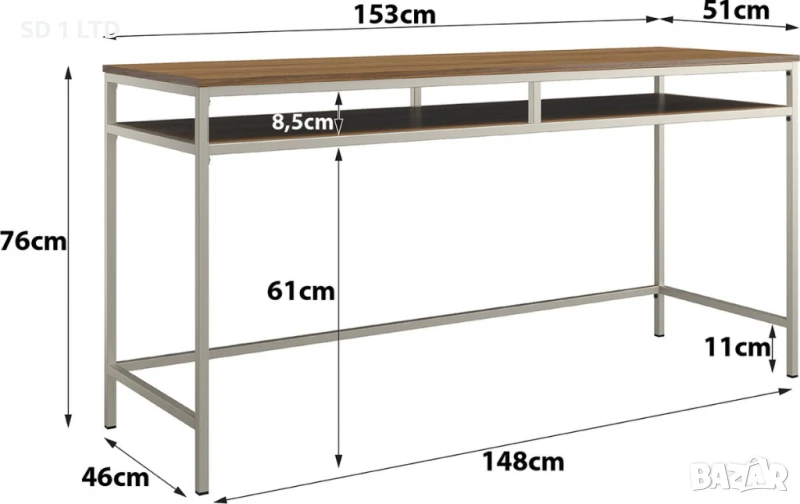 Офис бюро c дървен плот Loft24 21209966 метална рамка офис бюро работна маса → Обява 51189899