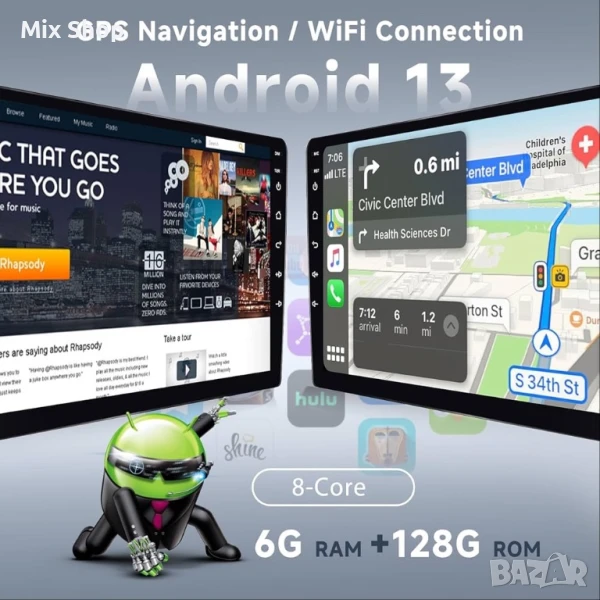 Усъвършенствана система за автомобилно забавление: Оборудвана с обновена операционна система Android и 8-ядрен процесор, автомобилното радио предлага несравнима плавна работа. С 6GB RAM и 128GB място за съхранение, то лесно побира вашата музикална библиотека, подкасти и приложения. Насладете се на визуалното удоволствие от 10-инчовия HD дисплей с резолюция 1280*720. Изберете от 59 различни потребителски интерфейса и 19 тапети, а екранът поддържа многозадачност, като показва до 4 приложения едновременно и лесно превключва между тях с дълго натискане.