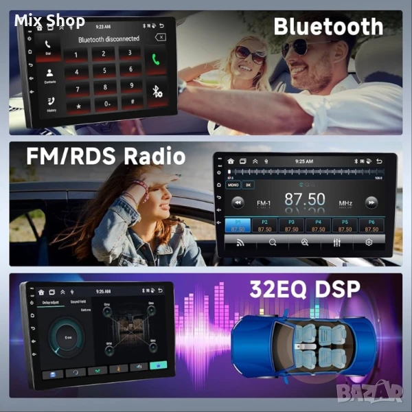 Bluetooth 5.0 с FM/RDS радио: Това Android авто радио е оборудвано с най-новата система Bluetooth 5.0, осигуряваща стабилно и ефикасно безжично предаване на данни, независимо дали става въпрос за споделяне на файлове, безжично възпроизвеждане на музика или разговори със свободни ръце. Оборудвано с функция FM/RDS радио, то покрива целия честотен диапазон 87.5-108MHz и поддържа до 30 предварително настроени радиостанции. Вградената 32EQ DSP технология значително подобрява качеството на звука и ефективно намалява шума, изкривяванията и електромагнитните смущения, правейки удоволствието ви от слушането по-чисто.
