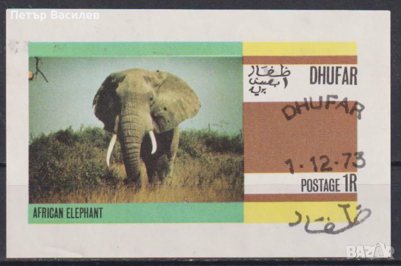 Клеймован блок Фауна Слон 1973 от Оман - Дофар.