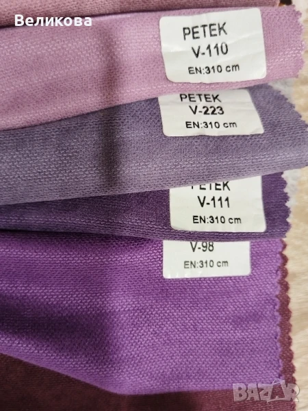 При на ще откриете почти всички цветове на плат петек с ширина 300 см. Предлагаме и ушиване по Ваш размер. На вайбър мога да пратя видео на избран цвят. 0876841898 Ако имате въпроси не се притеснявайте да позвънете. Поздрави !