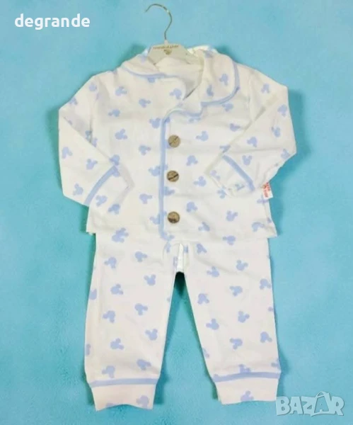 ШОК ЦЕНА Бебешко комплектче с мечета в синьо и кафяво.