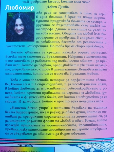 Продавам книгата Нашето вечно утре автор Габриел Зевин. Книгата е в отлично състояние изд. София 2024г. 533стр.